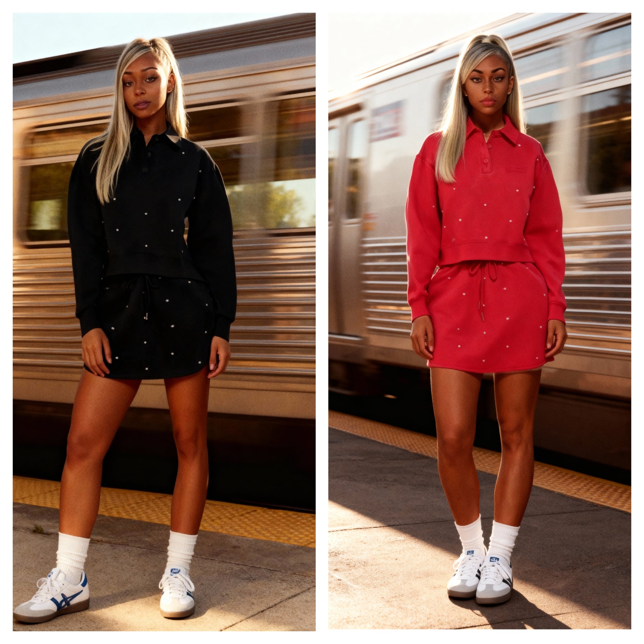 Get ready to strut your stuff in the Over Embellished Skirt Set! This matching duo combines soft scuba vibes with a polo-style top that screams “I’m fabulous and I know it!” The drawstring mini skirt lets you adjust your style (and snack capacity), while the crystals and studs add just the right amount of bling. Perfect for when you want to shine without taking yourself too seriously!